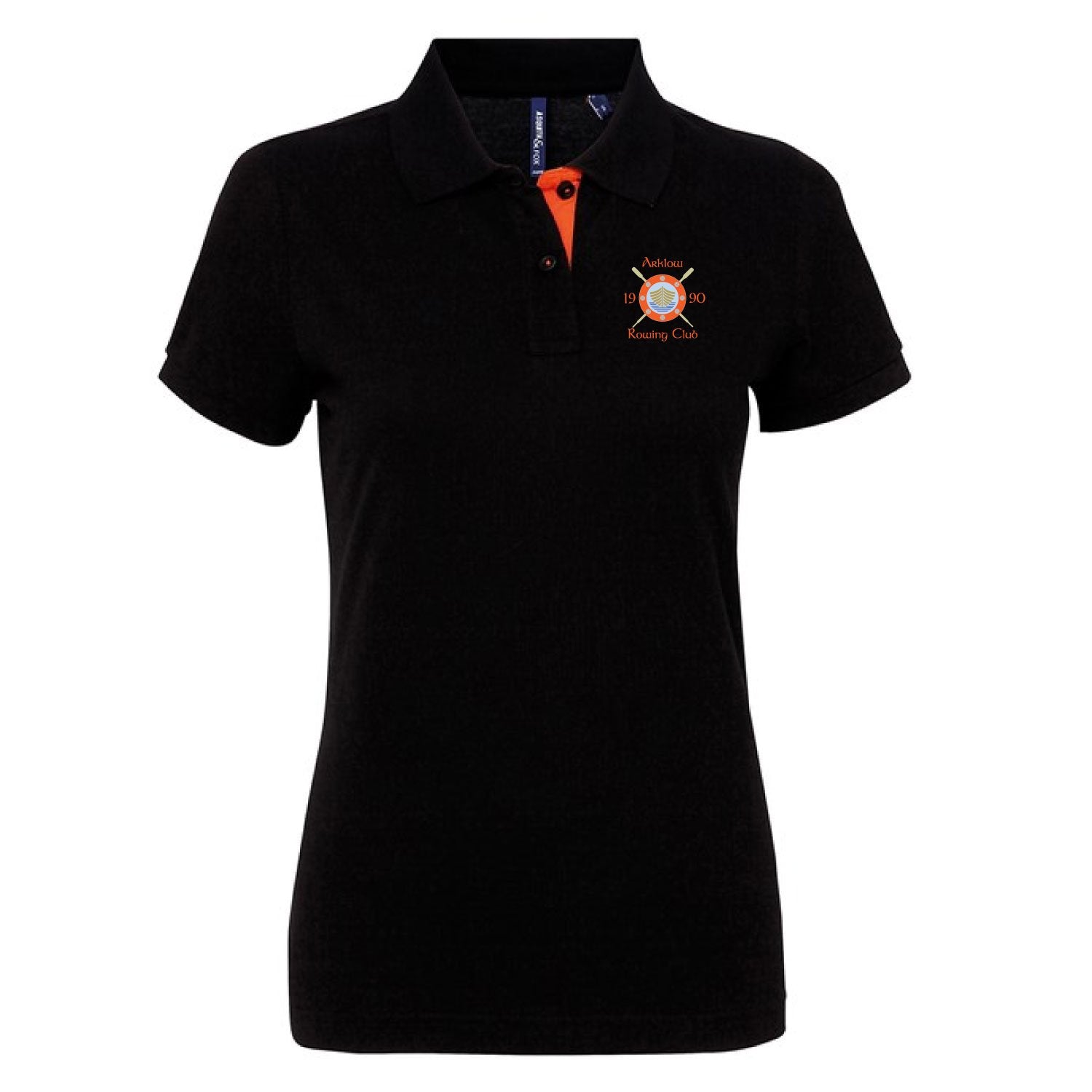 Fitted polo for women with contrast collar and placket. Two contrast coloured buttons on placket. Contrast colour on side vents. Twin needle stitching on hem. Ribbed knit collar and sleeve cuffs. Washing Instructions Domestic wash at 30c. Sizes: XS 8(33") S 10(35") M 12(37") L 14(39") XL 16(41") 2XL 18(43")