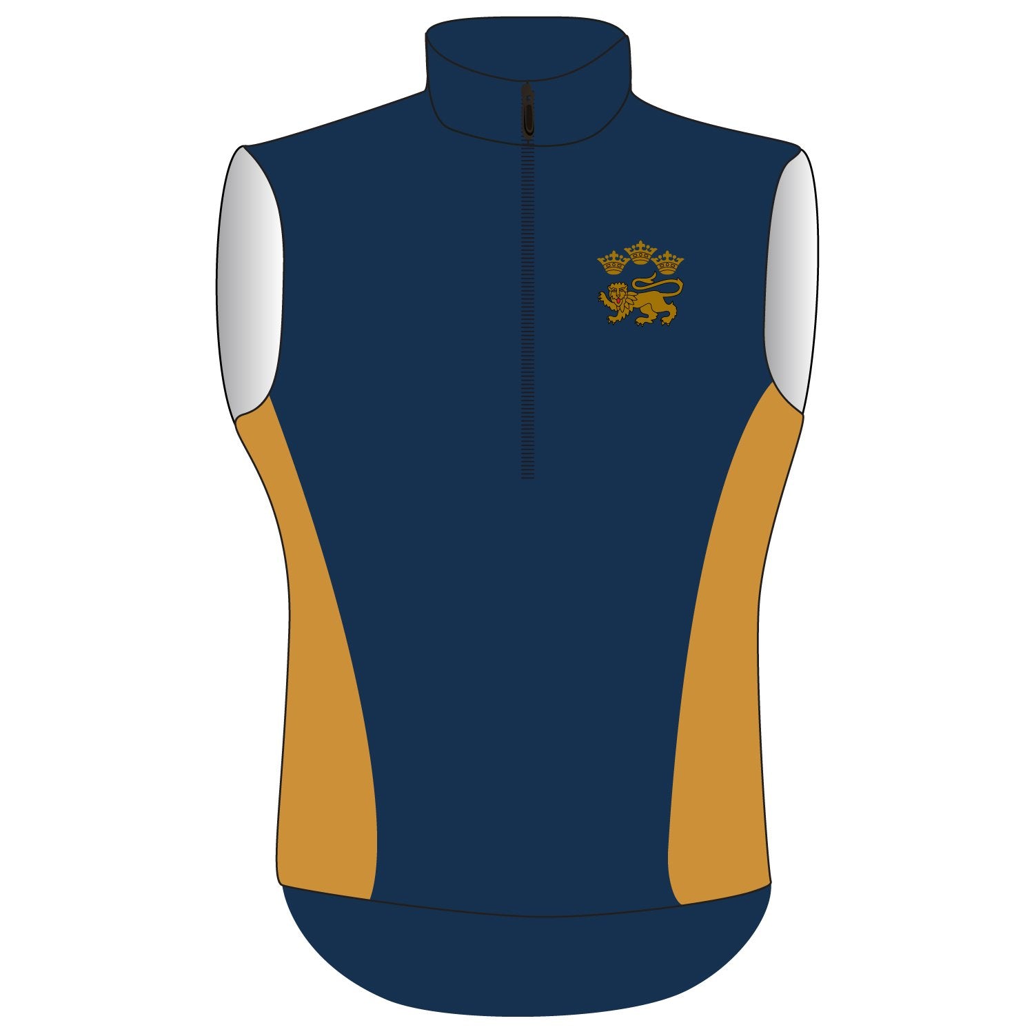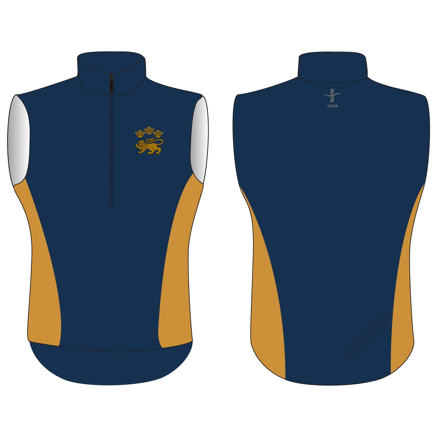 - An over the head gilet with a ½ zip at the front and a zipped pocket to rear.