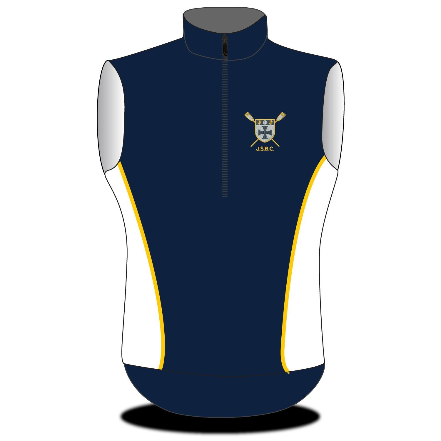 - An over the head gilet with a ½ zip at the front and a zipped pocket to rear.