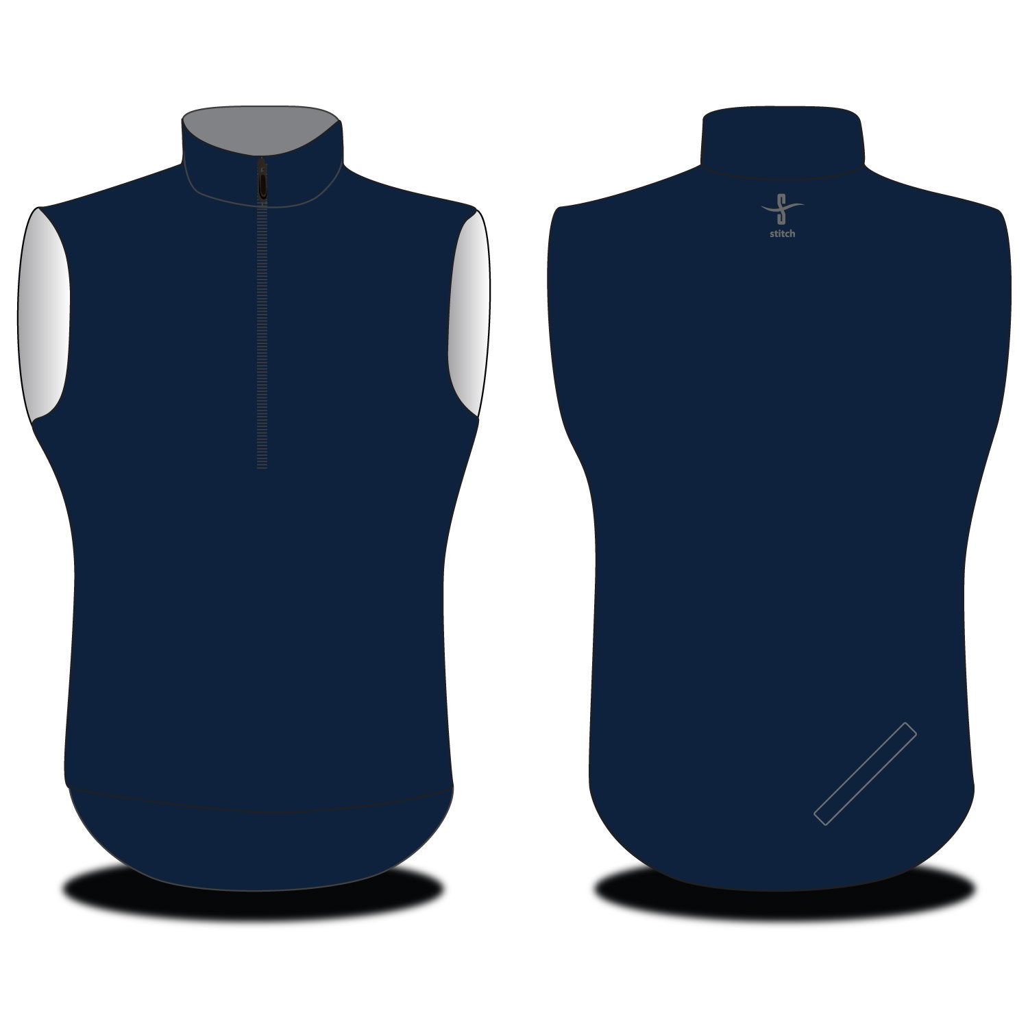 - An over the head gilet with a ½ zip at the front and a zipped pocket to rear.