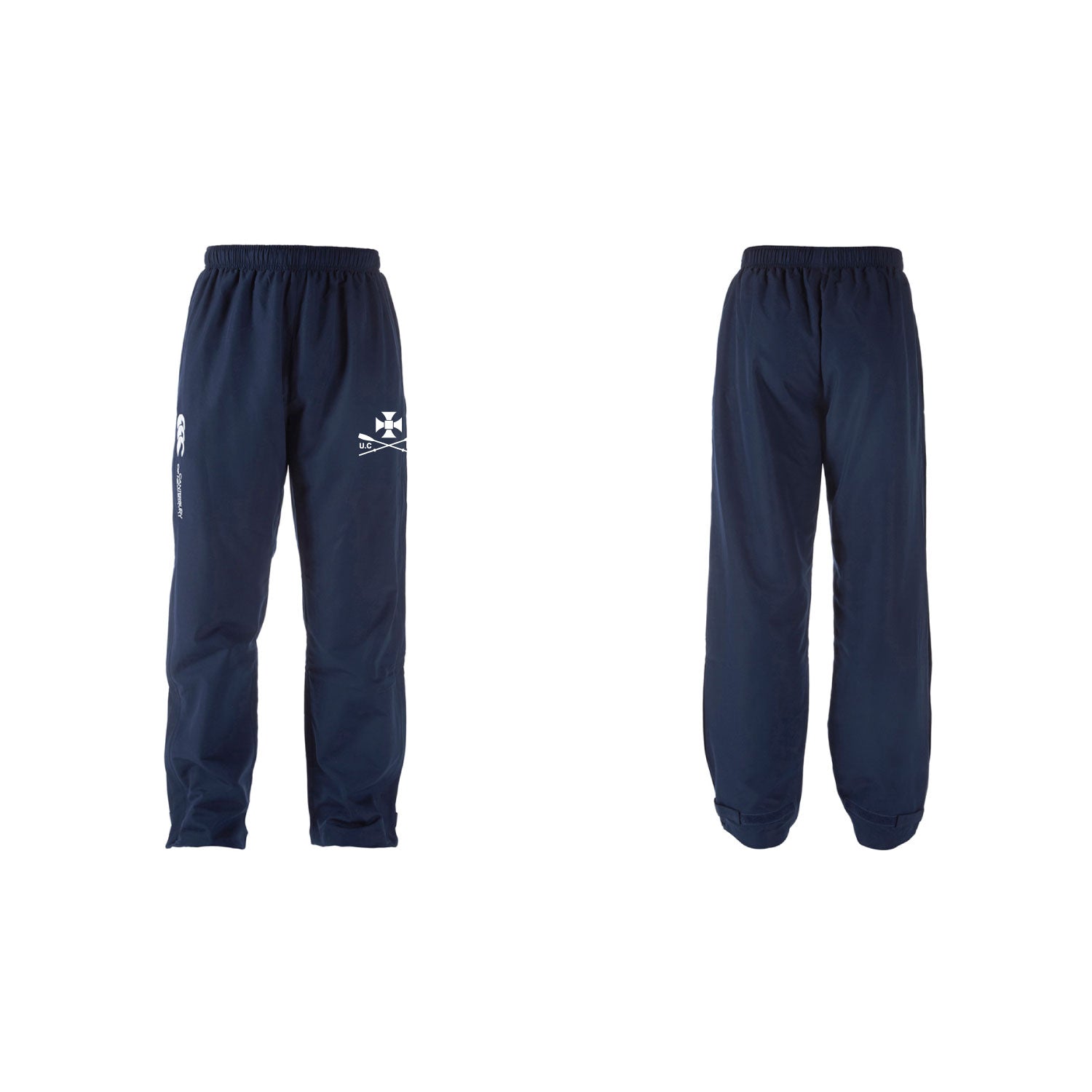 Whether it's a day of training or just relaxing at home feel comfortable and supported in these men's open hem stadium pants. An elasticated waist with a drawstring cord gives you a secure fit while the cotton ¾ inner lining is designed to feel soft against your skin. Full length zips running up the outside of the legs means these pants can easily be pulled on and off when in a hurry and zipped side pockets make sure your valuables stay safe. They're finished with a Canterbury logo