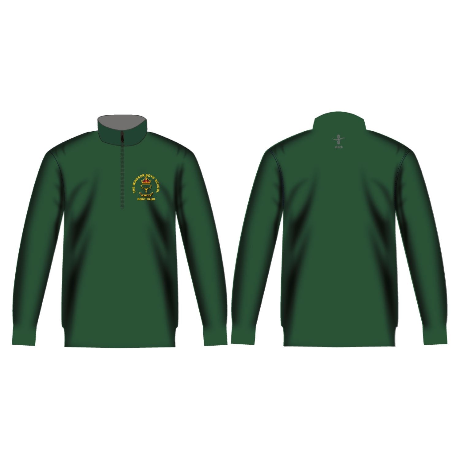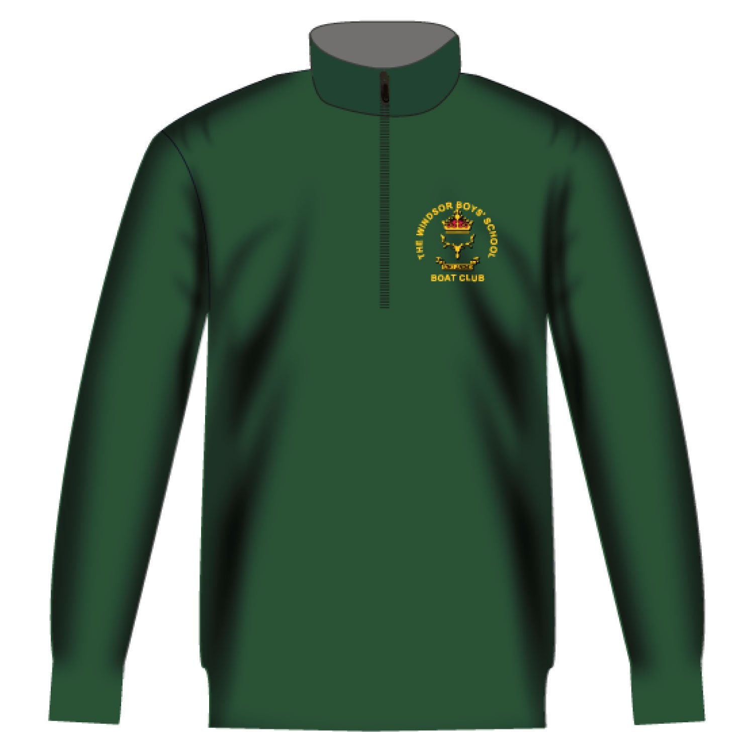 Windsor Boys School 1/4 Zip Sweatshirt Available in Bottle Green with Windsor Boys crest embroidered to the left chest. A staple wear 1/4 zip sweat with a classic fit crafted from cotton faced fabric that is great for layering. Metal YKK zipper and puller. Ribbed cuffs and hem. Hidden earphone loops. Washing Instructions Machine wash 30°. Do not bleach. Tumble dry low heat. Low iron. Do not dry clean Fabric 80% Ringspun cotton, 20% Polyester Weight 280gsm Size S 36” M 40” L 44” XL 48” 2XL 52